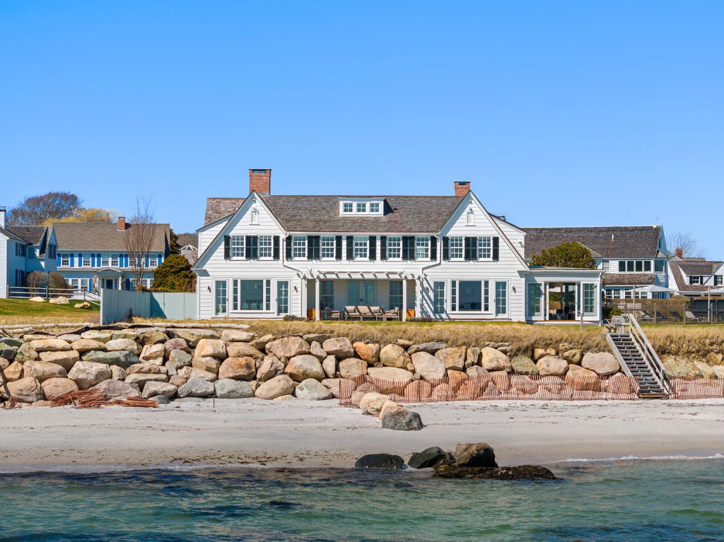 From above, the sweeping views of Nantucket Sound are uninterrupted, with the beach stretching out just steps from the rear terrace.