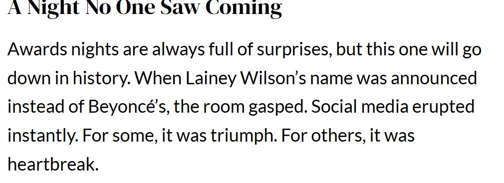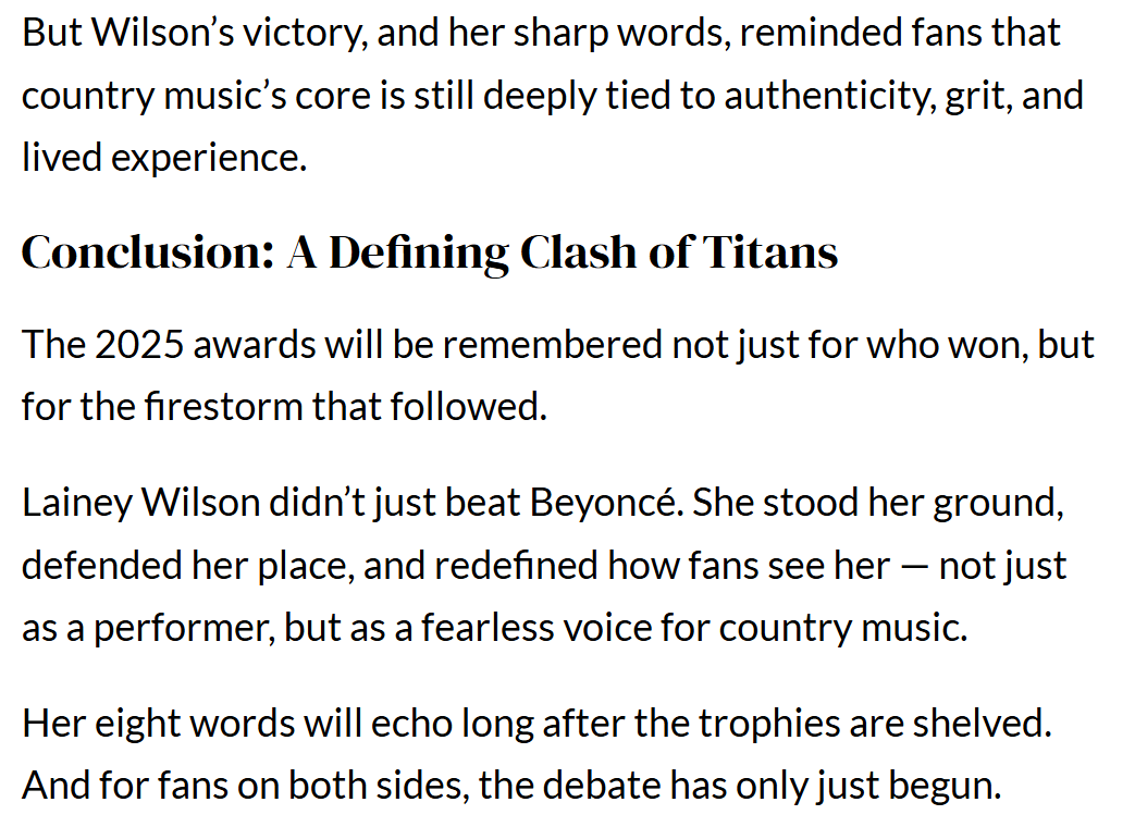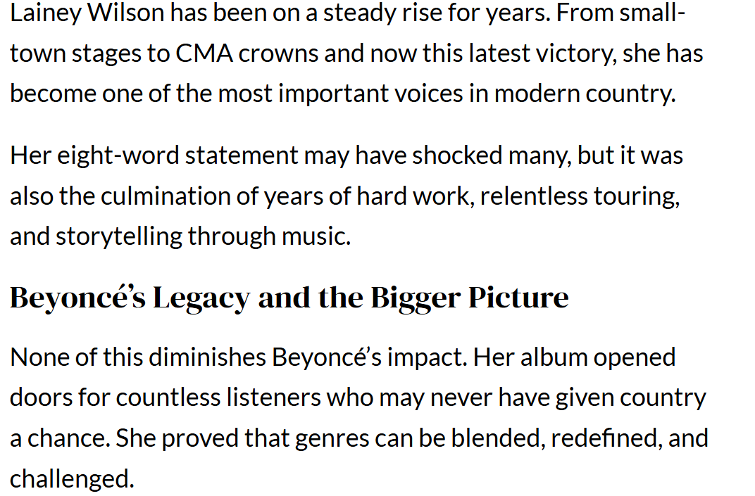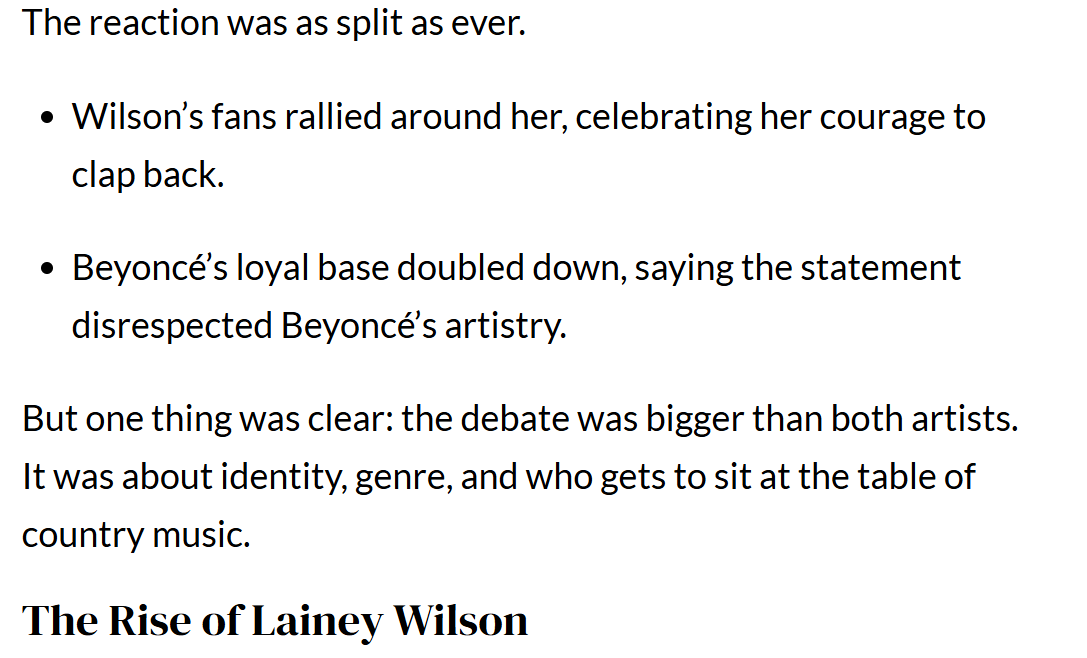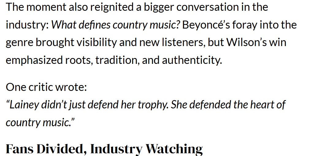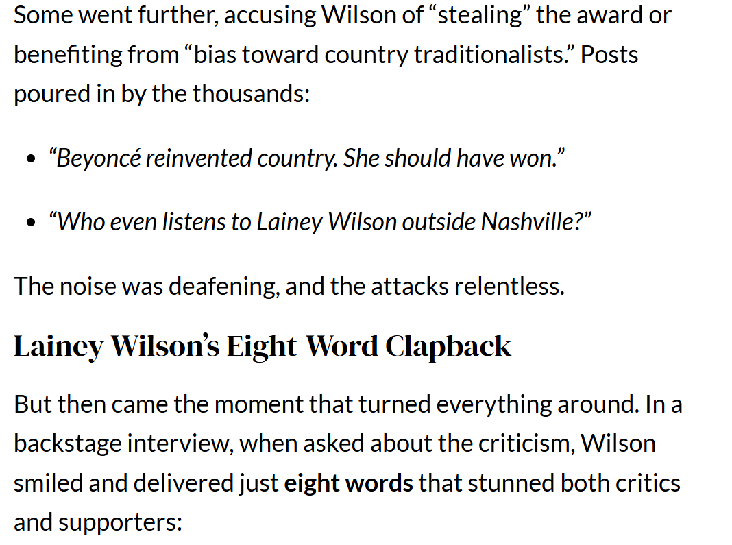 Lainey Wilson stunned the music world by defeating Beyoncé at major awards — but when angry fans attacked, her sharp eight-word clapback flipped the script, leaving country fans cheering and critics desperate to know more.